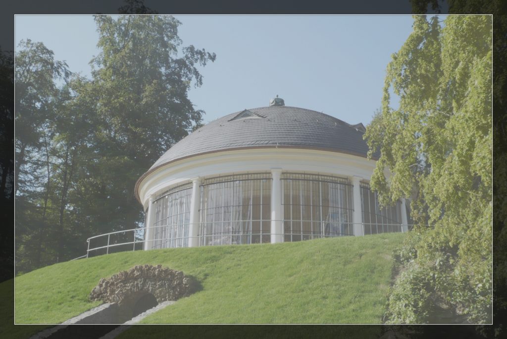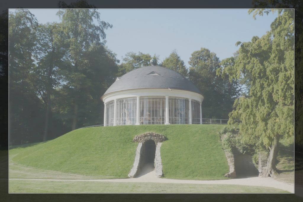 Marquise de Hanau-Münzenberg: Absolut authentisch, würde ich sagen. Als befände ich mich bei strahlendem Hochsommer-wetter auf dem Parkgelände. In einem Traum beispielsweise am 05. August 2016. Da lugt es vormittags beinahe vollständig hinter dem in Blickrichtung rechts von ihm stehenden Baum hervor. Ich befinde mich unterhalb der Anhöhe, etwas links von dessen Ästen. Aus ihm heraus fegen meinen emporstarrenden Augen frostige Sturmböen entgegen, in ihnen die Befehle wieder-holenden Pferdestimmen. Dennoch herrscht Windstille. Unheimlich. Nicht mal der kleinste Zweig bewegt sich. Verrückt.