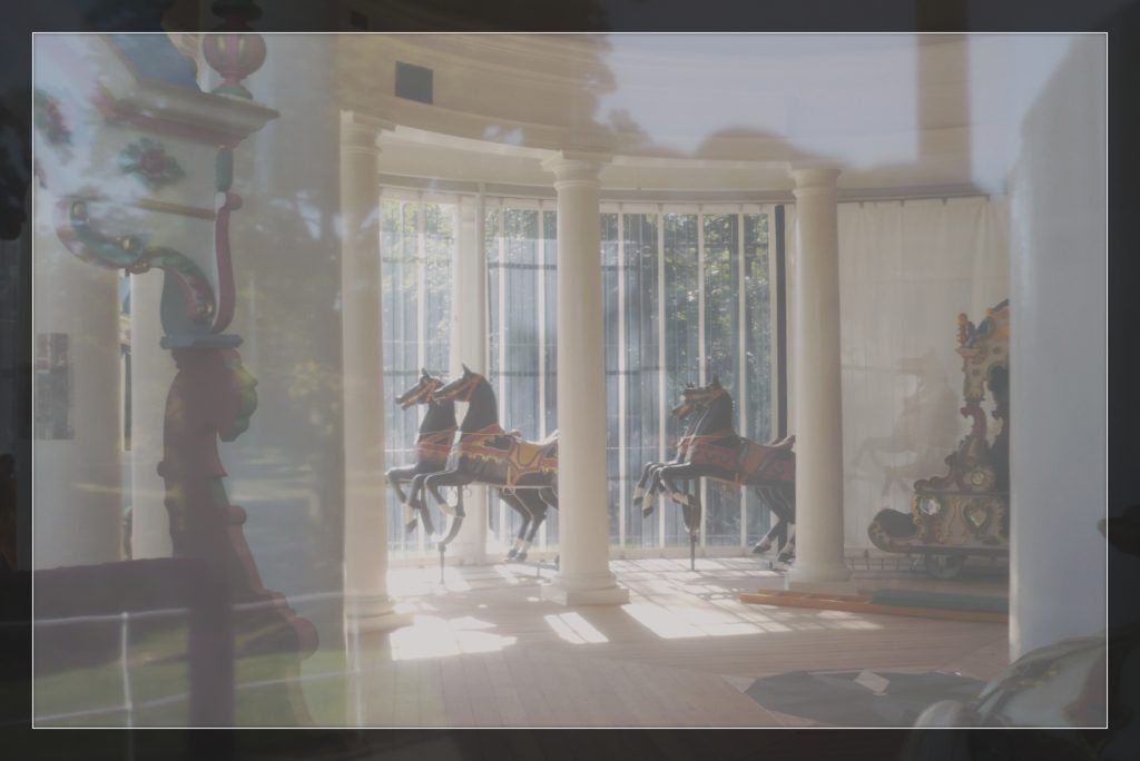 Anschließend hexen mich die Pferde mit einem mir unverständ-lichen magischen Spruch direkt an den Plastikschutz des Karussells. Auch hier vermag ich nicht das Gesicht abzuwenden, stiere durch die auf dem Kunststoff reflektierten Spiegeleffekte hinein, dermaßen überzeugend glänzend, dass gestochen scharfe Nahaufnahmen selbst im Traum schier unlösbare fotografische Herausforderungen darstellen würden.