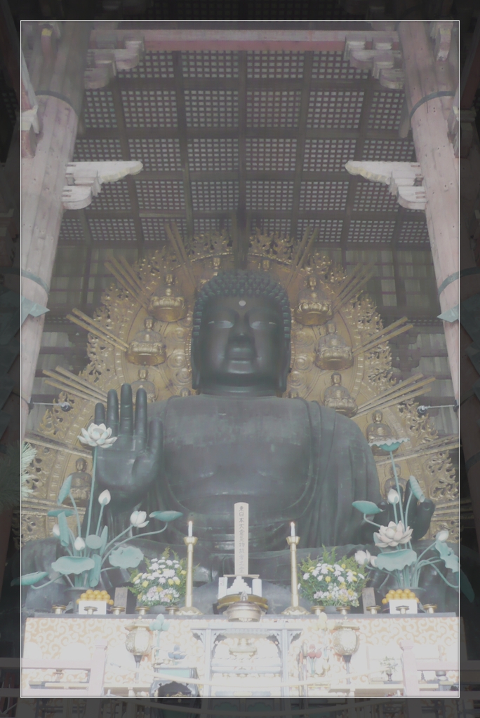 Ha, jetzt wird’s wirklich verrückt!!!!! Plötzlich gleicht die Eremitage der berühmten Tempelhalle im japanischen Nara. Meine Blicke sind auf jene zum nunmehr thronenden Daibutsu von Nara gewordene Gestalt gerichtet; als würde ich ihm wie 2012 beim Schüleraustausch direkt gegenüberstehen.