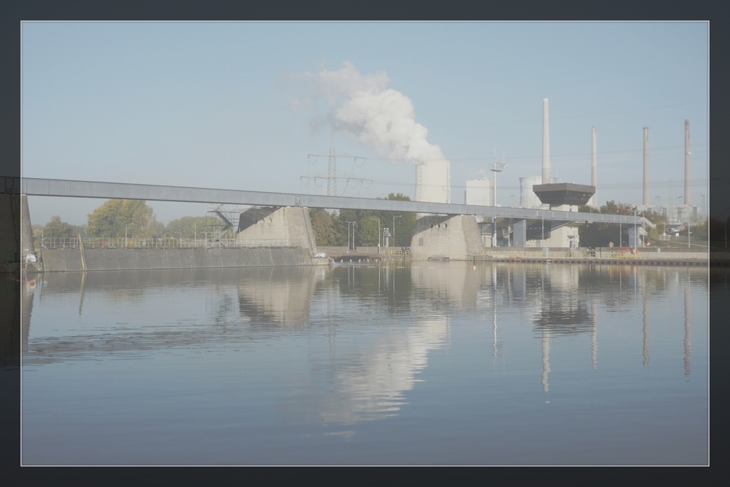 (Handylautsprecher, Personalchefin Schwester Amanda): Betrachteten Großkrotzenburgs Schleusenanlage. Ich rief euphorisch aus: „Da steht das Bauwerk, Mädels! Hat sich seit 2014 ja mal überhaupt nicht verändert!“