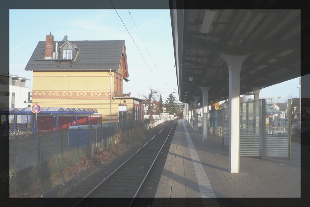 Fiona: Langsam entstehen Eiszapfen an meinen Füßen. Nun habe ich mittlerweile zum dritten Mal den gesamten Bahnsteigbereich nach möglichen Sonder-Aushängen abgesucht. Vergeblich. Also nichts übersehen, bin doch nicht blöd! Obertshausens Bahnsteig. Weiterhin gähnende Leere. Die anderen wussten was, ich schwör’s dir, Fiona, ich schwör’s dir, die anderen wussten was. Ja, bist du denn als einzige dumm? Offenbar. Und darum guckt Fiona erneut voller Hoffnung in diese Richtung.